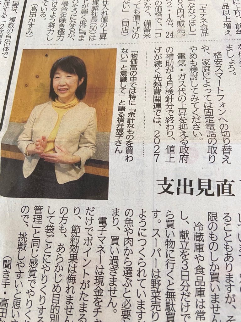 コメ、野菜、食用油、酒類などの値上げが続くなか、家計防衛対策や節約のコツを知りたいと、北海道新聞社の記者からご連絡をいただき、お会いしました。